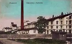 In First Partition of Poland, in 1772, Przeworsk was annexed by the Habsburg Empire, remaining in Austrian Galicia until November 1918. In the late 18th century, the Austrian authorities pulled down the obsolete late-medieval ramparts and gates. The town remained in decline until the late 19th century, when it became a railway junction, and a center of sugar production, with the Przeworsk Sugar Refinery (1895). In 1859, Przeworsk was connected by rail with Kraków by the Galician Railway of Archduke Charles Louis. In 1902 it had a new railroad to Rozwadów, and in 1904, a narrow gauge line to Dynów was completed. The population began to grow, new housing was built, together with a monument dedicated to King Władysław II Jagiełło (1910), but World War I brought destruction to the town.