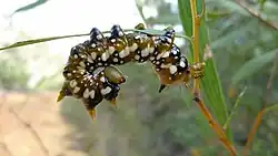 The larvae feed on Banksia, Hakea, Dryandra and Grevillea leaves.[2]