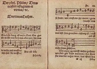 ![]() Print of Luther's paraphrase of Psalm 46 in Klug's Gesangbuch, 1533: Der xlvi. Psalm / Deus noster refugium et virtus | |