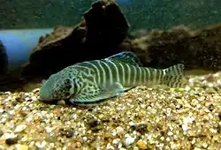 | Hemimyzon zebroidus (a synonym of Pseudogastromyzon fasciatus) Nichols, 1925[1]