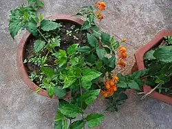 Pseudogynoxys chenopodioides is a fast-growing,[7] twining, herbaceous vine that reaches a height of 5 metres (16 ft) to 10 metres (33 ft).[8]