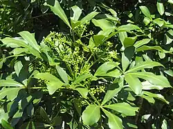 Pseudopanax (Latin for "false ginseng") is a genus of seven species of evergreen plants that are endemic to New Zealand.[1] Flowers of the genus occur in terminal umbels.[2][3]