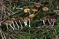 Psilocybe cyanescens often fruits gregariously or in cespitose clusters, sometimes in great numbers. 100,000 P. cyanescens fruits were once found growing on a racetrack in the south of England.[7] Solitary fruits are sometimes also found.[5]
