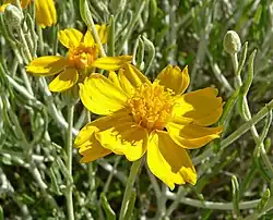 Psilostrophe cooperi is a flowering plant in the daisy family known by the common names Cooper's paper daisy and whitestem paperflower. It is native to the Mojave and Sonoran Deserts of California, the Southwestern United States, and northwestern Mexico.