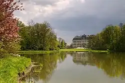 During the Polish January Uprising in 1863 Poles smuggled large amounts of gunpowder through the town to the Russian Partition of Poland.[5] From 1871 Pleß was part of Germany, however, at the beginning of the 20th century, over 80 percent of the district's population spoke Polish; during the 1910 census 86 percent declared as Polish speakers,[6] though in the town itself the percentage of Polish speakers was 33.[7] When World War I erupted, the Hochbergs lent the estate to the German state for military purposes. The German chief of staff held his headquarters at the castle of Pleß, often visited by Emperor Wilhelm II himself.