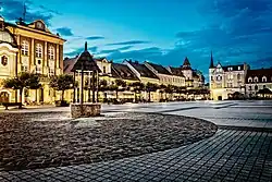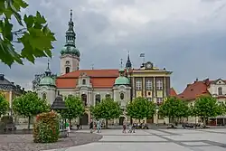 ![]() Protestant Church and Town Hall at the Rynek (top) Pszczyna Castle (bottom) | |