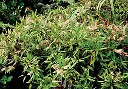 It also occurs in dry scrub on rocky ridges and hilltops with the fern Dicranopteris, and in savannas and dry forest with Dicranopteris and Metrosideros trees.[3]