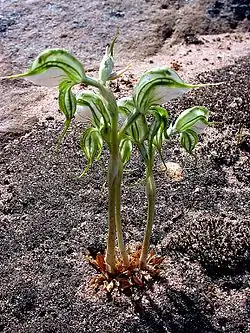 | Pterostylis planulata growing in the Grampians National Park | |