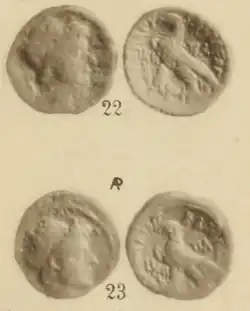 - ^ Ioannis Svoronos, Ta nomismata tou kratous ton Ptolemaion, Athens, 1904, vol. I-II, p. 302 (n°1838), & vol. III-IV, plate LXI, n°22, 23.