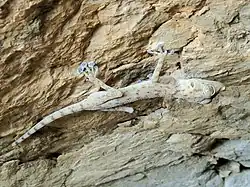 The Ruus al Jibal fan-footed gecko (Ptyodactylus ruusaljibalicus) is a species of gecko. It is endemic to the Ru'us al-Jibal, the northernmost of the Hajar Mountains[1] in the Musandam Peninsula shared by Oman and United Arab Emirates.[2]