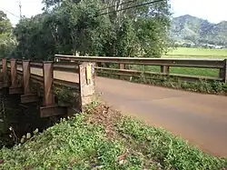 The Puʻuʻōpae Bridge (also known as Kalama Stream Bridge and Kapaʻa Homesteads Bridge #2) is a one-lane, single-span, concrete-encased steel bridge across Kalama Stream located along Puʻuʻōpae Road between Kalama and Kīpapa Roads in the Wailua Homesteads area near Kapaʻa in Kauaʻi, Hawaiʻi, United States. Originally built in 1915, it was listed on the National Register of Historic Places in 2005.[2]