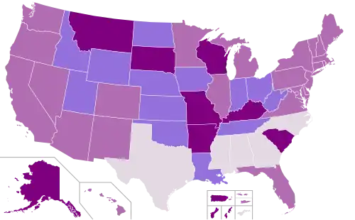Several states also have protections for breastfeeding in public.[12] In addition several states provide for non-discrimination in public accommodation when based upon sexual orientation or gender identity.[13]