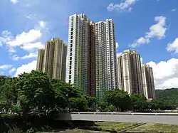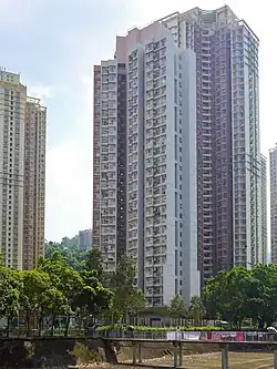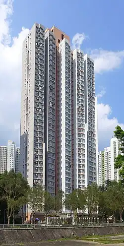 Hin Keng Estate (顯徑邨) is a mixed public and TPS estate at the south of Tai Wai.[13] Named for nearby Hin Tin Village (顯田村) and Keng Hau Village (徑口村), the estate consists of 8 residential buildings completed between 1986 and 1989.[14] Some of the flats were sold to tenants through Tenants Purchase Scheme Phase 3 in 2000.[15] There is another adjacent public estate, Hin Yiu Estate (顯耀邨), which has only one residential building.