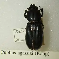 Publius agassizi is a beetle of the family Passalidae, named in honor of Louis Agassiz. Females can produce fertile eggs in isolation, although that is a rare occurrence in the wild. [1]