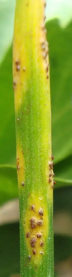- ^ Abbasi, M.; Klimek, J. F.; Aime, M. C. Aime (2016). "First report of rust disease caused by Puccinia liliacearum on Ornithogalum umbellatum from Indiana and Maryland with notes on the spread of the rust fungus in the United States". Plant Disease. 100 (10): 2169. doi:10.1094/PDIS-04-16-0509-PDN.