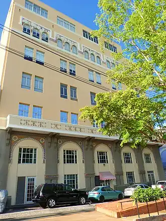 Puerto Rico Ilustrado/El Mundo Building (Spanish: Edificio El Mundo/Puerto Rico Ilustrado) is a historic Art Deco high-rise building located in the Old San Juan historic district of the city of San Juan, Puerto Rico. The building was erected in 1923 to serve as the headquarters of the El Mundo newspaper and the Puerto Rico Ilustrado magazine.[1] The architecture of the building blends numerous styles that represent the conjunction of various artistic movements and architectural schools of the late 19th century and the early 20th century. It is located in a high-rise block that faces the elevated La Palma Bastion portion of the city wall of San Juan which, when observed from beyond, makes the building look taller than it is in reality. The building was added to the National Register of Historic Places in 1997 for its architectural and historic importance.[2]