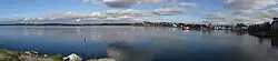 The city is famous for its German traditions,[3] its natural environment, and its popularity as a tourist destination. It enjoys a scenic location close to mountains, lakes, forests and national parks.[4] It is located 20 kilometres (12 mi) from the city of Puerto Montt on the shore of Llanquihue Lake, the second largest lake in Chile.[5] The conical Osorno Volcano and the snowcapped peaks of Mt. Calbuco and Mt.Tronador are clearly visible from the lakefront. Puerto Varas is the southernmost of a string of towns on the western shore of Llanquihue Lake that includes Frutillar, Llanquihue and Puerto Octay. It spans an area of 4,064.9 km2 (1,569 sq mi).