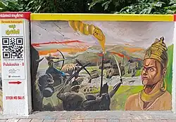 The Aihole inscription suggests that Pulakeshin won over the Chola, the Chera, and the Pandya kings as his allies in his struggle against the Pallavas.[67] He marched towards Kanchipuram, but the Pallava inscriptions suggest that he suffered reverses in battles fought at Pariyala, Suramara, and Manimangala, near Kanchipuram.[68]
