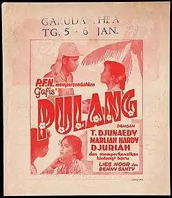 Pulang is a 1952 Indonesian drama film directed by Basuki Effendy and starred Turino Djunaedy, Marlia Hardi, Djuriah Karno, Lies Noor, and Renny Santy.