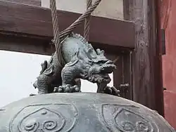 - ^ In the article The Bell of the Bailin (Cypress Grove) Temple, the following English translation is offered: "There is the big fish called the whale in the sea and the animal called pulao at the seaside. The pulao is always afraid of the whale. Whenever the whale attacks the pulao, the latter roars. Whoever wishes to make a bell sonorous puts a pulao design on it. The striker is the whale."