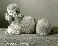 Pulaski's Masterpiece was a silver grey toy poodle bred by Alexis Pulaski. Born in New York on August 4, 1946, from Pulaski's poodle breeding program, Masterpiece was owned by Pulaski and the less frequently mentioned Gilbert W. Khan and Nathalie Stuyvesant Pierrepont.[1][2] Masterpiece competed in dog shows from 1947 until retiring from the show ring in 1950, and was the first toy dog to win all three of championship, obedience, and utility titles.[3]
