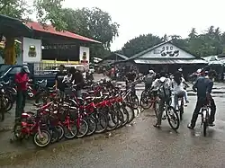 Mountain biking is a popular activity on Pulau Ubin and the island is home to one of Singapore's mountain bike trails, Ketam Mountain Bike Park which was built in 2007.[20] The trail is approximately 8 kilometres long, varies in elevation and features a wide range of terrain from open meadows to thick jungle and is well-marked with signs indicating the difficulty level of each section. While a large proportion of visitors to the island bring their own bicycles, rental cycle vendors are prevalent in Ubin town.