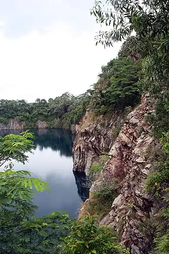 Pulau Ubin (OO-bin), also simply known as Ubin, is an island situated in the north east of Singapore, to the west of Pulau Tekong. The granite quarry used to be supported by a few thousand settlers on Pulau Ubin in the 1960s, but only about 40 villagers remained as of 2012.[1] It is one of the last rural areas to be found in Singapore, with an abundance of natural flora and fauna. The island forms part of the Ubin–Khatib Important Bird Area (IBA), identified as such by BirdLife International because it supports significant numbers of visiting and resident birds, some of which are threatened.[2] Today, the island is managed by the National Parks Board, compared to 12 agencies managing different areas of the island previously.[3]