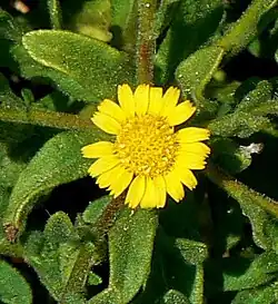 Pulicaria microcephala is a species of flowering plant of the family Asteraceae endemic to the Berlengas archipelago in Portugal. It is a small and ramified plant[2] occurring in clearings of scrubs in coastal cliffs.[3] Its flowers are yellow, flowering between March and July.[2][4] It is an endangered plant species,[3] mainly threatened by the excessive nitrification of soils (due to the high density of seabirds) and invasive plant species, namely the ice plant.[4]