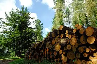 Pulpwood can be defined as timber that is ground and processed into a fibrous pulp. It is a versatile natural resource commonly used for paper-making but also made into low-grade wood and used for chips, energy, pellets, and engineered products.[1]