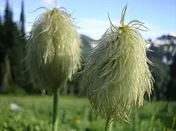 On Mount Rainier with some achenes cut away to show the receptacle and seeds -