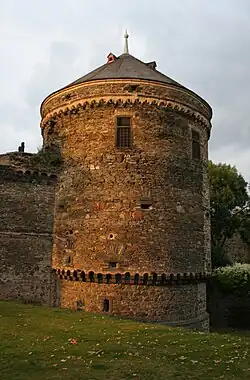 The Pulverturm in Andernach is a tower that is part of the archiepiscopal-Electorate of Cologne castle at Andernach and, at the same time, a fortified tower in the town fortifications. It was built in 1519 at the behest of the Archbishop of Cologne and Prince-Elector Hermann V of Wied as part of the expansion and reinforcement of the already c. 300-year-old Stadtburg and town wall. It was built on the south side of the palas and marked the southwestern corner of the Electoral Cologne castle site.