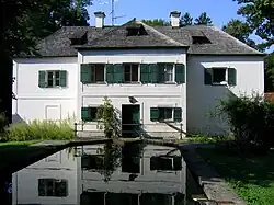 The Green Pumphouse forms part of the "Dörfchen" (petit hameau) and is situated in the park on the southern canal where a marked drop in altitude to the central area of the park allowed the installation of water wheels (48°9′19.16″N 11°29′54.19″E / 48.1553222°N 11.4983861°E). It was built in 1720 by Joseph Effner for Maximilian II Emanuel, Elector of Bavaria and contained pumps to supply water to the nearby Badenburg. In 1762, it was renewed and further little houses were added containing a forge and dwellings for the pump attendant and other servants. In 1767, Francois Poitevin installed a wooden baroque pumping station pumping water to water towers from where the fountain in the Large Parterre was operated by gravity.
