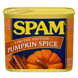 Pumpkin Spice Spam is a limited edition variety of Spam produced by Hormel Foods. It was released online on 23 September 2019, the first day of autumn.[1][2][3] Spam is one of many brands to release pumpkin spice products for the autumn season, and is not the first meat product to be pumpkin spice flavored.[4][1]