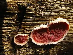 Punctularia strigosozonata is a fungus species of the genus Punctularia.[1] It was originally described in 1832 by Lewis David de Schweinitz as a member of genus Merulius. Patrick Talbot transferred it to genus Punctularia in 1958. Punctularia strigosozonata produces the antibiotic phlebiarubrone.[3][4][5]
