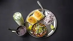 Puneri misal is a popular vegetarian dish from Pune, Maharashtra, India. The dish is eaten for breakfast or as a midday snack or meal, often as part of misal pav. It remains a very popular snack since it is easy to make, is relatively cheap and has good nutritional value. The taste of Puneri-misal ranges from mild to spicy. Misal is also a popular street food.[1][2] This dish is not so hot and spicy like Kolhapuri Misal. The dish originates from Pune based on the taste requirement of local people.