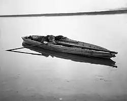 Punt guns were usually custom-designed and varied widely, but could have bore diameters exceeding 2 inches (51 mm) and fire over a pound (≈ 0.45 kg) of shot at a time.[1] A single shot could kill over 50 waterfowl resting on the water's surface. They were too big to hold and the recoil was so large that they had to be mounted directly on punts used for hunting, hence their name. Hunters would maneuver their punts quietly into line and range of the flock using poles or oars to avoid startling them. Generally, the gun was fixed to the punt; thus the hunter would manoeuvre the entire boat in order to aim the gun. The guns were sufficiently powerful, and the punts sufficiently small, that firing the gun often propelled the punt backwards several inches or more. To improve efficiency, hunters could work in fleets of up to around ten punts.