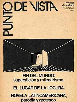 Punto de Vista (Point of View) was an Argentine literary journal founded in 1978[1] during the height of the military regime headed by General Jorge Videla. Taking advantage of the slight lessening of censorship after Argentina's 1978 FIFA World Cup soccer victory, the journal, whose contributors were pseudonymous, focused on art and politics, stressing culture over ideology both because it was safer to do so under the extant political conditions, and because its editors were becoming disillusioned with orthodox Marxism.