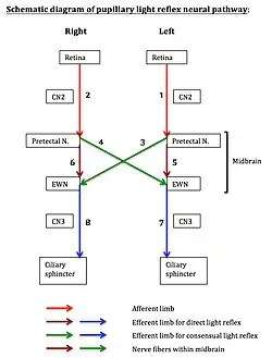 - ^ Belliveau, A. P.; Somani, A. N.; Dossani, R. H. (2019). "Pupillary Light Reflex". StatPearls. StatPearls. PMID 30725865.