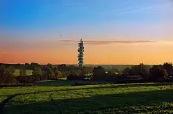 A temporary steel-lattice tower was built on the site in 1961,[2] ready for the commencement of the GPO (later to become BT) microwave network, which used a network of point-to-point microwave links. The reinforced concrete tower was built in 1969-71,[2] using a design modified from the GPO's "Chilterns type", pioneered at the Stokenchurch BT Tower.[3]