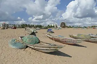 Puri Beach or the Golden beach is a beach in the city of Puri in the state of Odisha, India. It is on the shore of the Bay of Bengal. It is known for being a tourist attraction and a Hindu sacred place.[1][2] The beach is the site of the annual Puri Beach Festival, which is co-sponsored by the Indian Ministry of Tourism, the city of Puri , the Development Commissioner of Handicrafts, and the Eastern Zonal Cultural Center, Kolkata.[3]