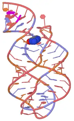- ^ a b c d e Serganov A, Yuan YR, Pikovskaya O, Polonskaia A, Malinina L, Phan AT, Hobartner C, Micura R, Breaker RR, Patel DJ (2004). "Structural basis for discriminative regulation of gene expression by adenine- and guanine-sensing mRNAs". Chem Biol. 11 (12): 1729–1741. doi:10.1016/j.chembiol.2004.11.018. PMC 4692365. PMID 15610857.