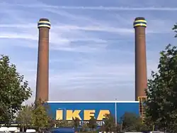 IKEA is now the fifth biggest single employer in Croydon.[3] The landmark chimneys have been a continuing point of contention with local residents. In September 2003, IKEA briefly considered demolishing them, stating that they cost over £70,000 a year to maintain, but decided against it. Ideas that have been aired for their use have included incorporating a museum of the site's history, and constructing a revolving restaurant at the top.[4]