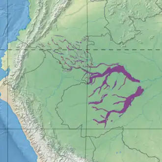 The Purus várzea is a low-lying region of the central Amazon basin that is seasonally flooded. It covers 17,741,418 hectares (43,840,000 acres) of eastern Colombia and western Brazil. It extends along most of the Juruá, central Purus, and Caquetá (Japurá) rivers and their tributaries. In the east it reaches the confluence of the Japurá and Solimões Rivers.[1] Urban centers in or around the region are Tefé, Tabatinga and Carauarí.[2]