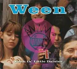 "Push th' Little Daisies" is a song by American band Ween, appearing on their third album, Pure Guava, in 1992. It was released as a single in 1993. A music video was released, featuring Dean and Gene Ween eating various foods while fooling around with cuts to a girl and interspersed with them performing the song. The video (which replaced the word "shit" with a sample of Prince squealing—taken from his song "Alphabet St.") and the song gained exposure after being critiqued on the MTV show Beavis and Butt-head.[2]