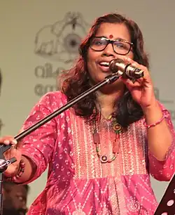 Pushpavathy P R,[1] also known as Pushpavathy Poypadathu is an Indian singer, composer and lyricist. Trained in Carnatic Vocal, Pushpavathy holds a Post Graduate Diploma (Ganapraveena) from Chembai Memorial Government Music College, Palakkad and received her advanced training under Guru Mangad Natesan (1994-2005). Pushpa's first directorial venture was a music album based on the Poems of Kabir (Kabir Music of Harmony 2005) which has won critical acclaim in many platforms and was a best seller too. Pushpavathy was a B grade artist with AIR (All India Radio) from 1999 to 2004.[2][3][4][5] She is the vice chairperson of Kerala Sangeetha Nataka Akademi