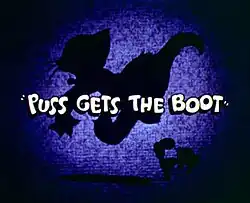 Puss Gets the Boot is a 1940 American animated short film and the first short in what would become the Tom and Jerry cartoon series, though neither are yet referred to by these names.[1] It was directed by William Hanna and Joseph Barbera, and produced by Rudolf Ising. It is based on the Aesop's Fable, The Cat and the Mice. As was the practice of MGM shorts at the time, only Rudolf Ising is credited. It was released to theaters on February 10, 1940, by Metro-Goldwyn-Mayer.