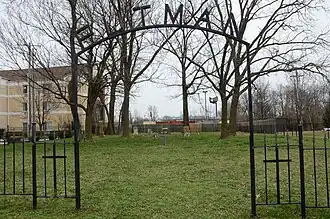 The Putnam Cemetery is a historic cemetery on SE Metro Parkway, just south of Walton Boulevard, in Bentonville, Arkansas. Now completely surrounded by commercial development, this small cemetery (less than 0.5 acres (0.20 ha)) is ringed by an iron fence with an arch identifying it, and is located just behind hotels that front on Walton Boulevard. The cemetery was established in 1860, and was the family burial ground of the Putnam family, who were some of Benton County's earliest settlers. It has fourteen marked graves, and an unknown number of unmarked ones.[2]