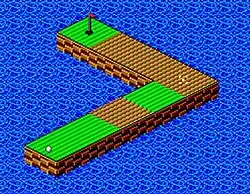 There are 18 holes in the game that increase in difficulty as the player progresses. Holes all have various obstacles that must be negotiated including sand traps, moving platforms and pinball style bumpers Almost all holes are surrounded by water and shots ending up off the course are given a one-stroke penalty. The holes are viewed from an isometric viewpoint. Shots are taken by using the directional pad to line up the shot and pressing a button on the control pad to start the power gauge, pressing it again selects the desired power. The 18 holes are split down into three groups of six holes, the player must finish each set either in par or under-par to move on to the next set.