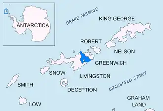- ^ a b L.L. Ivanov. Antarctica: Livingston Island and Greenwich, Robert, Snow and Smith Islands. Scale 1:120000 topographic map. Troyan: Manfred Wörner Foundation, 2009. ISBN 978-954-92032-6-4