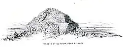 The pyramid consists of three steps and has a side length of 18.60 meters. Its height is still 8.25 meters today, although Perring and Vyse measured it in the mid-19th century at 11.75 meters. It consists of a core building with a side length of approximately 10.20 meters, around which two shells of 4.5 ells thickness each are arranged. A special feature of this pyramid is that its corners, and not its sides as is customary in Egyptian pyramids, are aligned with the cardinal directions. The explanation for this surely lies in the fact that its eastern side is oriented towards the course of the Nile, which flows here quite precisely to the northwest. The pyramid was constructed using locally sourced limestone as building material. The individual blocks are only roughly hewn and measure up to 60 by 100 cm. They are stacked in courses with an average thickness of 35 cm. A mixture of clay, Nile silt, sand and small limestone chips served as mortar.